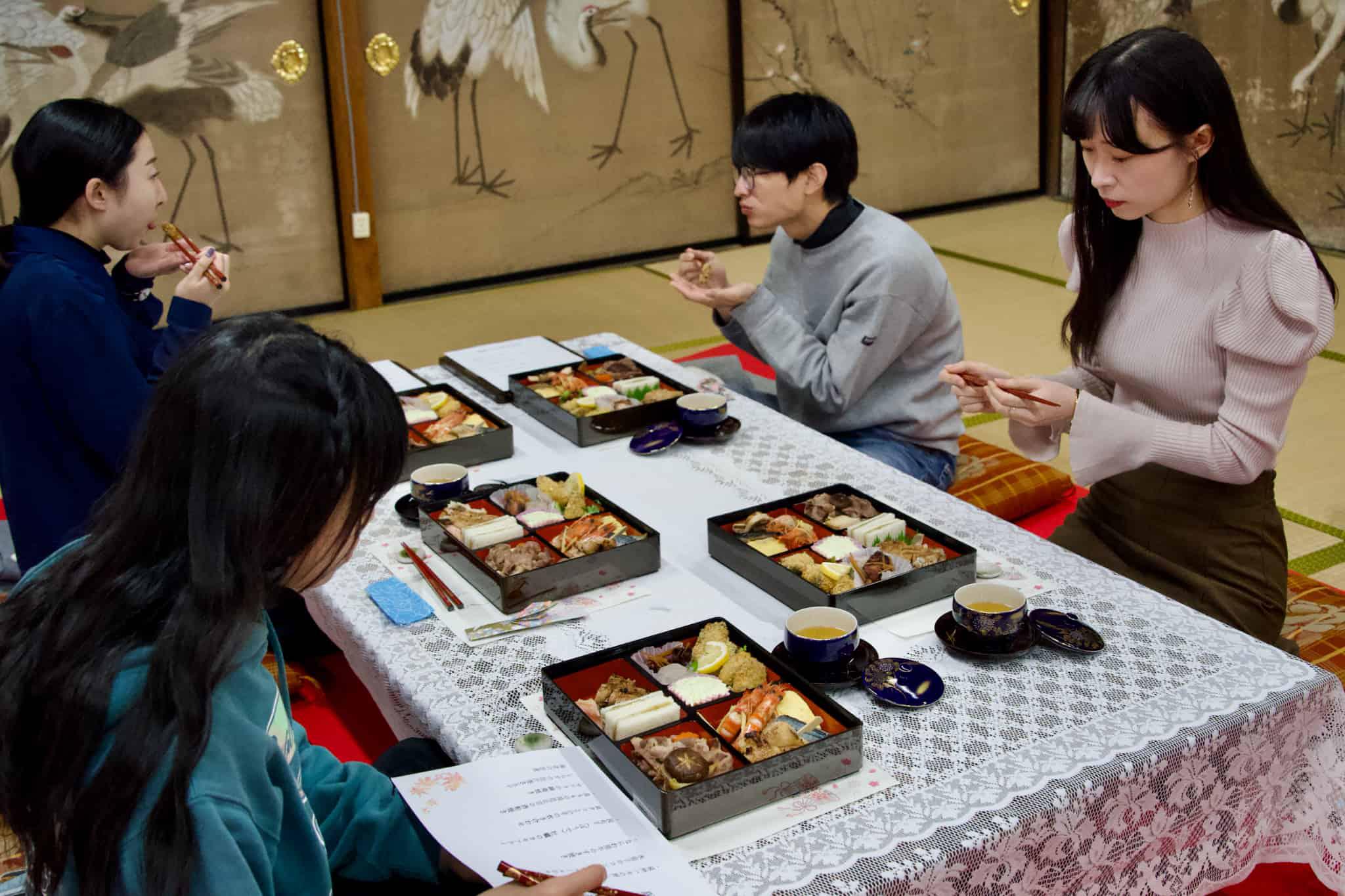 阪南市の特産品をふんだんに使った特製弁当をお寺の静かな空間でいただく。