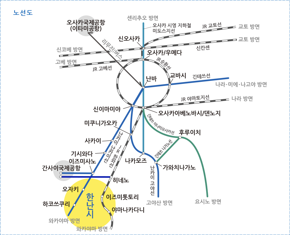 한와 고속도로, 한난 IC 출구에서 직진, 시모이데키타 교차로에서 좌회전,